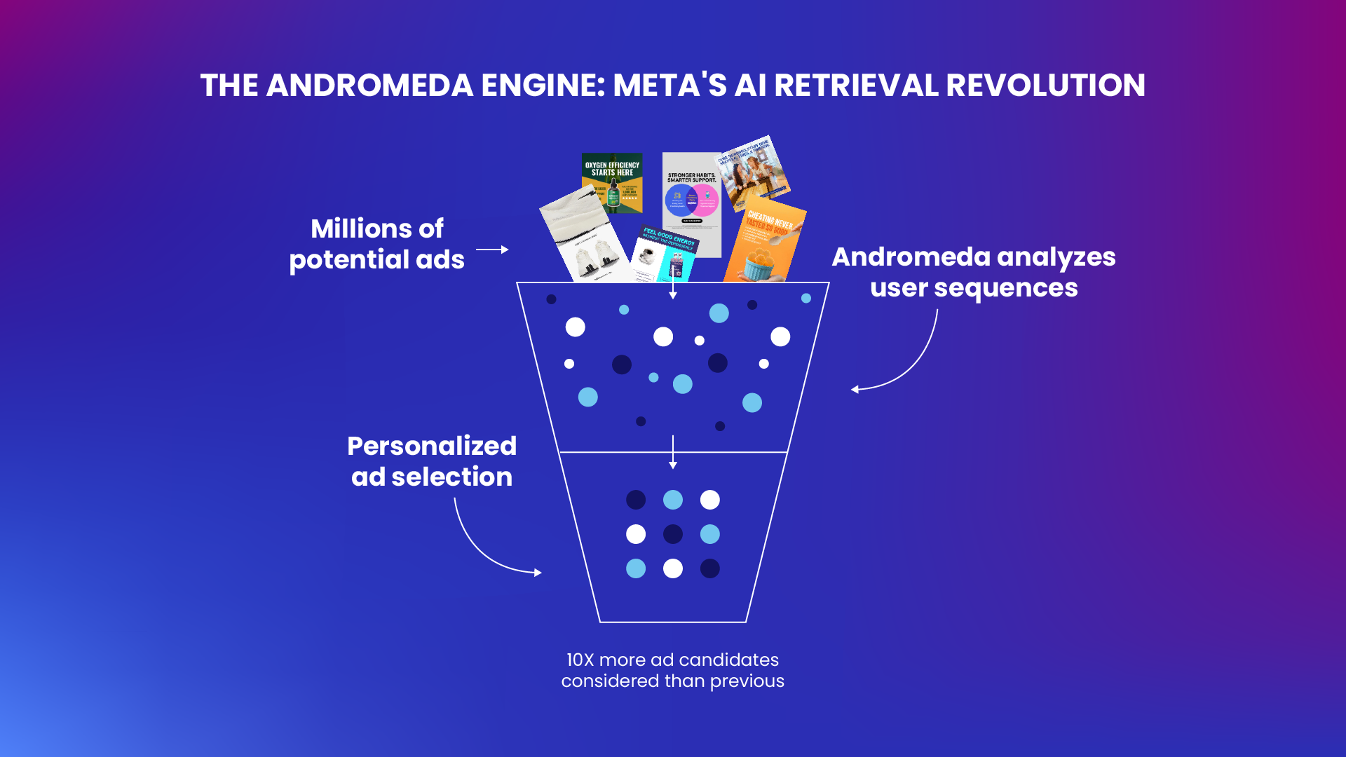 Andromeda is Meta’s next-generation ads retrieval engine, launched in December 2024, that selects which ads are shown to each person.